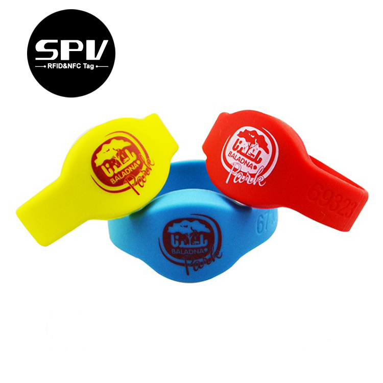 Không thấm nước có thể điều chỉnh NFC chip ban nhạc cổ tay Mifare cổ điển 1k siêu nhẹ C ntag 213 RFID Silicone dây đeo cổ tay cho công viên nước phòng tập thể dục